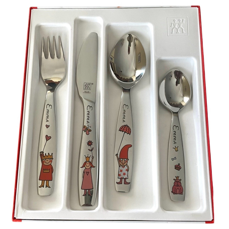 Set de 4 cubiertos infantiles con princesas, personalizados con texto ¡Lo que usted quiera!