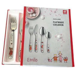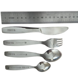 Cubertería infantil con dibujos PRINCESAS a todo color y personalizada con el texto que desee. Imborrable y permanente, es apto para niños desde 3 años. Es perfecta para sus pequeñas manos, ayudará a su hijo a aprender a comer con cuchillo y tenedor. Fabricado con acero inoxidable 18/10 y es apto para lavavajillas. El cuchillo sin sierra evita que los niños corran peligro de hacerse daño con estos cubiertos.